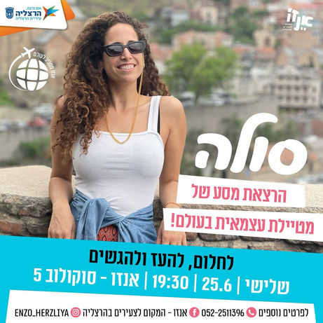 בהרצאה גם אספר בין היתר למה החלטתי שסולה תהפוך למיזם עסקי חברתי, איך סולה קשורה להעצמת נשים ולהגברת תחושת המסוגלות, ולמה לדעתי כדאי לכל אחד ואחת לטייל לבד לפחות פעם אחת בחיים, ואפילו לכמה ימים בודדים